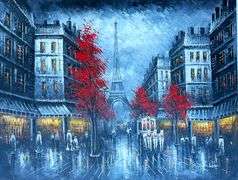 BEAUTIFUL B&W NEW VERSION OF Eiffel TOWER IN PARIS OIL PAINTING ON CANVAS, SIGNED BY THE ARTIST