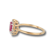 Pleasing Yellow Gold 1.50ct Oval Ruby and Diamond Halo Ring