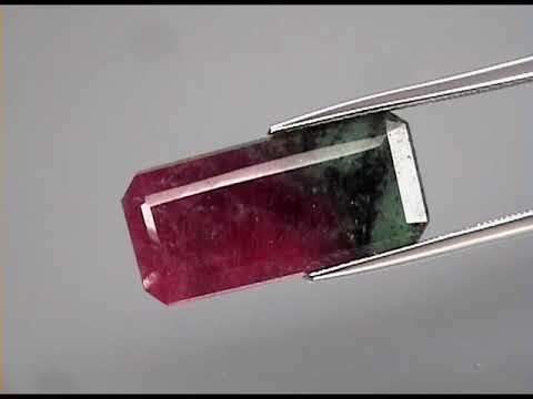 Holy color palettes, Batman! This amazing ruby in zoisite displays two very rich and well defined color palettes with its violet red ruby set against pine green, creating one amazing gemstone. This piece is very well cut with a classic emerald shape, and every facet is covered with a beautifully polished shimmering luster. It measures an impressive 22.2mm x 10.5mm x 7.8mm, so you know no one is going to miss it when worn. This gemstone is all natural, with no dyes or fillers, just pure ruby trapped in zoisite. Sourced from Winza, Tanzania.
