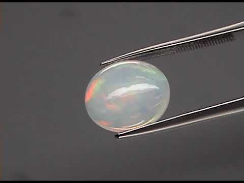 This is a fantastic piece. This jelly opal has a rolling floral pattern mixed with ribbon patterns and a touch of chaff pattern with full body rainbow flashing in electric greens, golds, and reds with touches of orange. It has a fully transparent body, and is covered by a glistening liquid luster. Sourced from Welo, Ethiopia, this large example measures 12.5mm x 10.5mm x 5.5mm. Untreated!