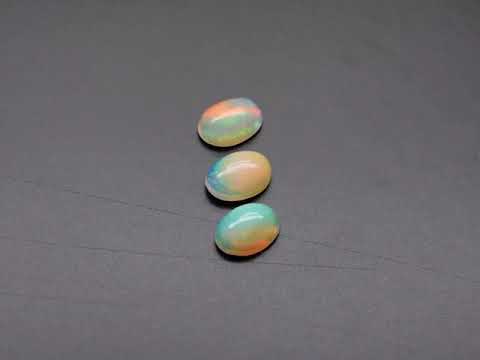 This amazing set of opals displays mixed play of color with light showings in both block and floral patterns. The colors of this set shines in both high and low lighting with pattern dominance changing depending on the light source while glowing in reds, golds, green, oranges, pinks and blues! The lusters of these opals glides across their smooth cabochon cuts glistening with a liquid presence, and they measure approximately 6.9x5mm each. Sourced from Yita Ridge, Ethiopia.