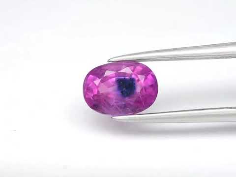 Ladies and gentlemen, do we have a collectors piece for you! Presented here is a rare pink sapphire with rich color and preferred medium saturation. But what is this? Floating right under its table? It's blue! During its formation over millions of years, a little titanium and and iron snuck into the mix to create this one of a kind gemstone! (Those are the minerals that make sapphires blue.) This unique display makes this very rare sapphire is a must for gem and jewelry collectors because we don't know when or even if we'll see another one. It has a classic oval cut with a stunningly well polished, and even though its got a lot going on inside, this piece still takes time to deliver pops of electric pink flashing. It measures 7.2mm x 5.2mm x 3.9mm and has a Mohs hardness rating of 9 out of 10, so this is a collectors piece not only easy to set, but you can actually wear it daily. Wow! Sourced from Madagascar. Heated only with no dyes or fillers. Just pure sapphire.