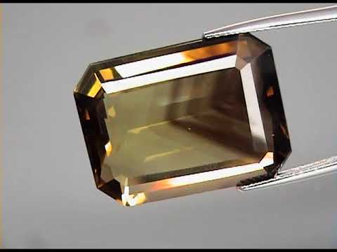 Holy smokes! Or should we say holy smoky quartz? But wait! Isn't it a citrine? Is it both? Oh my goodness, it is! Ladies and gentlemen, presented to you today is perhaps one of the coolest gemstone crossovers you will ever come across. You've heard of ametrine - a blend of amethyst and citrine, but this is a blend of citrine and smoky quartz called smoky citrine. This Brazilian born piece exhibits a strong smoky hue mixed with rich burnished gold hue to create a truly one of a kind gemstone. It glitters and pops with the intensity of a well cut citrine set against the backdrop of lush earth tones to create a display that is both rich and vibrant. And through its eye clean clarity, you can see translucent chevron patterns that highlight the gems unique formation. And it doesn't matter whether you are a gem buff or jewelry connoisseur, you are going to want to add this piece to your collection. The classic emerald shape of this smoky citrine is well faceted, showing gorgeous symmetry, and every cut has been beautifully polished to glistening perfection. It has incredible size, measuring 22.3mm x 16.5mm x 8.5mm, with a Mohs hardness rating of 7 out of 10. And the best part is, this extremely unique gemstone is untreated! Don't miss this rare opportunity!