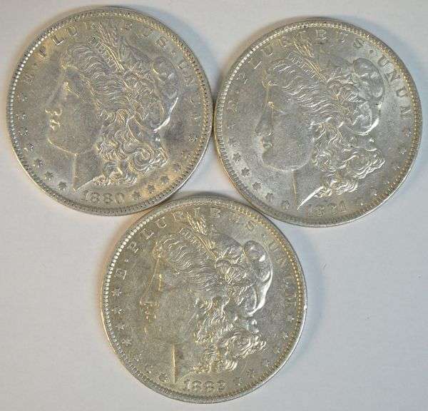 Nice upper end trio of early Morgan Silver Dollars from 1880, 1881, & 1882-O.