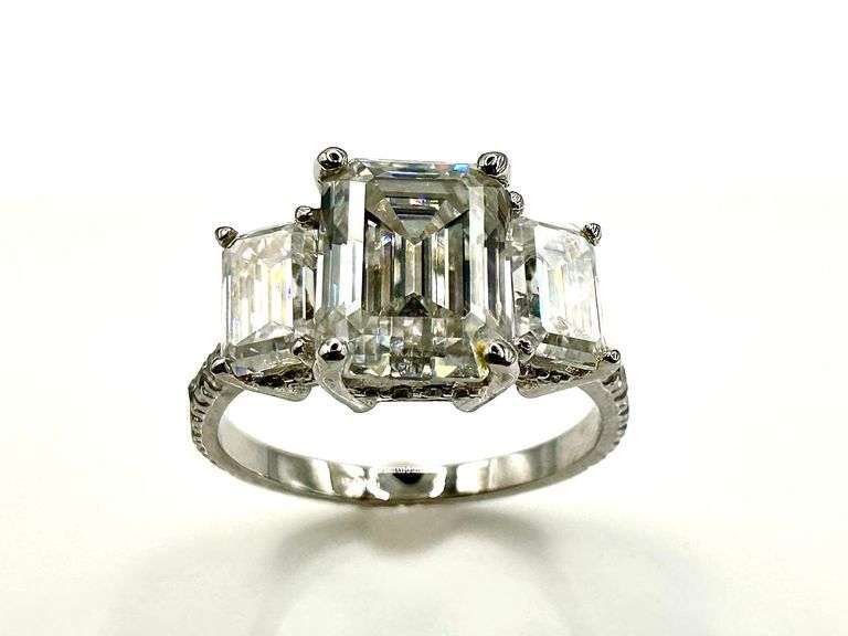 Sparkling 5.5 Ctw 3 Stone Emerald Cut Ice White Moissanite Ring