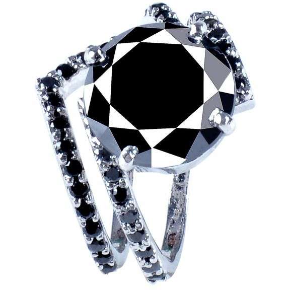 Huge 3.65 Ct Silk Black Moissanite Diamond 2 Band Ring